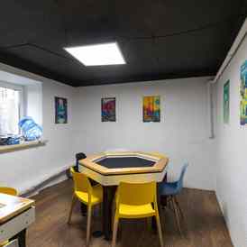 Попадая в People Meeple, вы сразу оказываетесь в уютном, удобном, светлом пространстве, которое создано для теплых и веселых посиделок с друзьями в компании интересных игр. Скандинавский дизайн интерьера с присущим ему обилием дерева, забавные плакаты, постеры, игровые столы ручной работы — все это позволяет сразу же почувствовать себя комфортно, непринужденно и расслабленно. Отдельным украшением клуба являются и сами игры: эксклюзивные, яркие и красочные — именно они создают основной ритм.